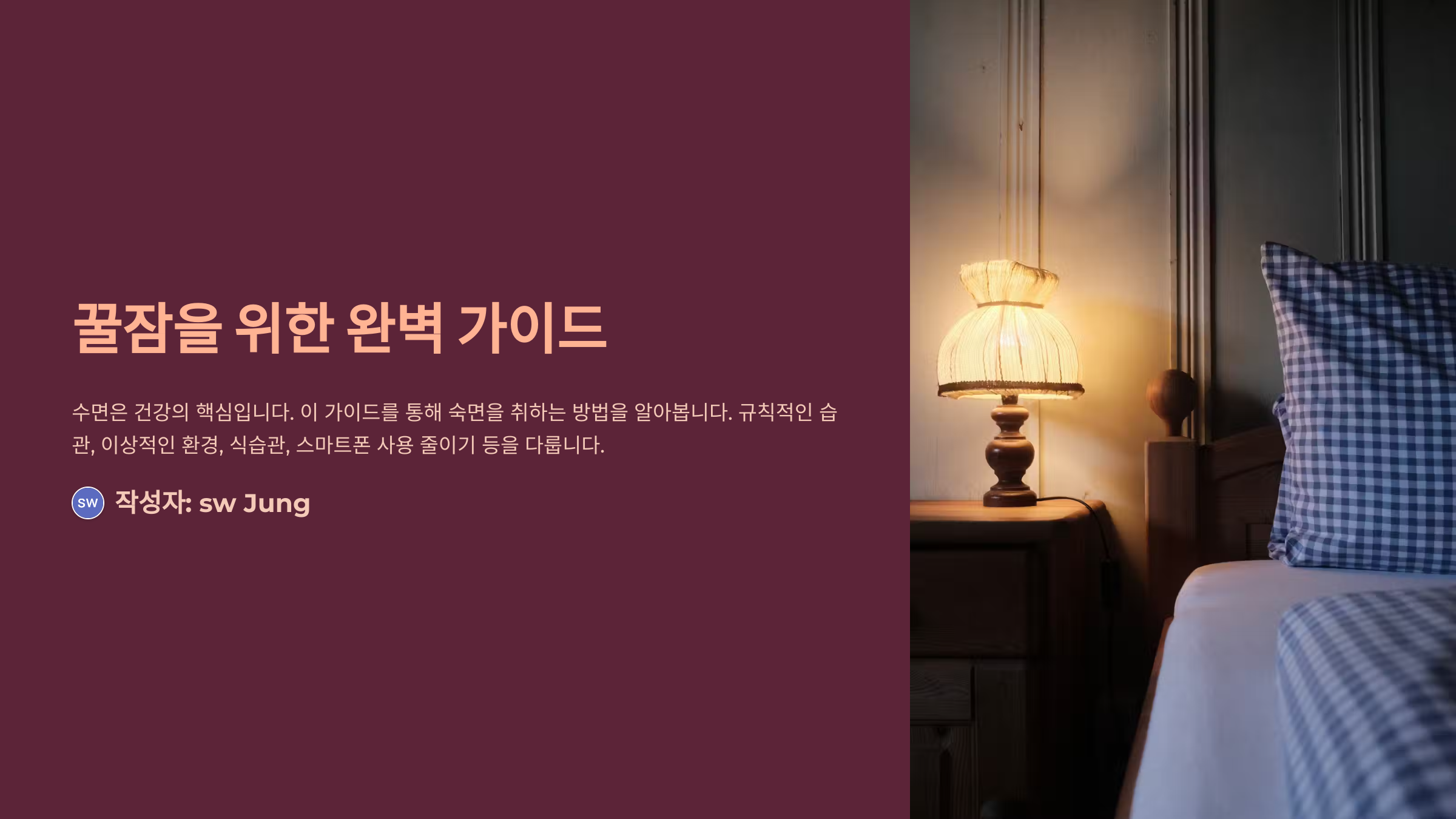 **습관을 조금만 바꿔도** 수면의 질이 확연히 달라질 수 있어요! 오늘부터 실천해 보세요. 😴