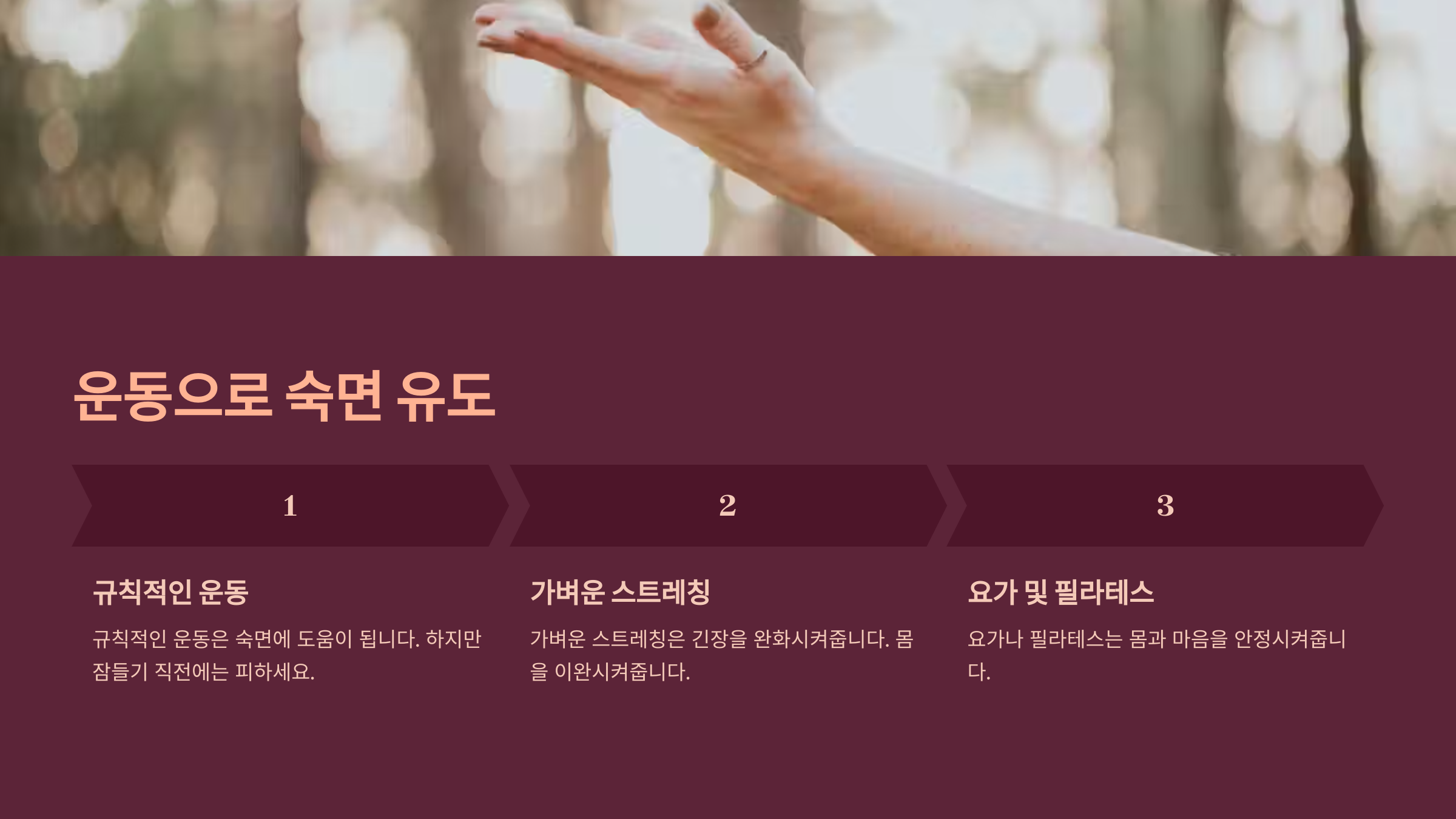 | 취침 전 휴식 | 가벼운 스트레칭이나 명상하기 |