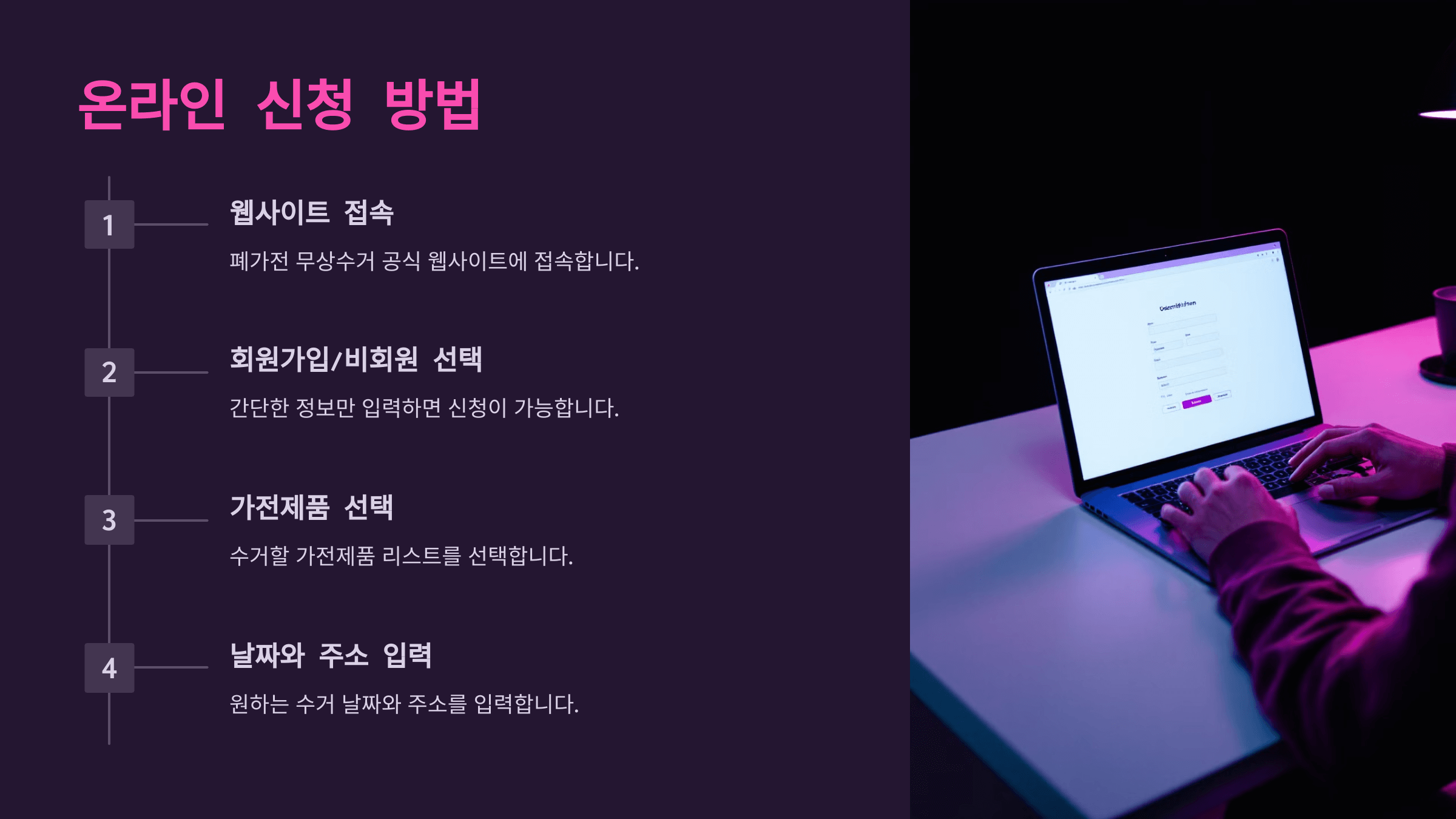 폐가전 무료수거 서비스는 온라인으로 간단히 신청할 수 있습니다. 다음 단계를 따라 해보세요! 🖱️