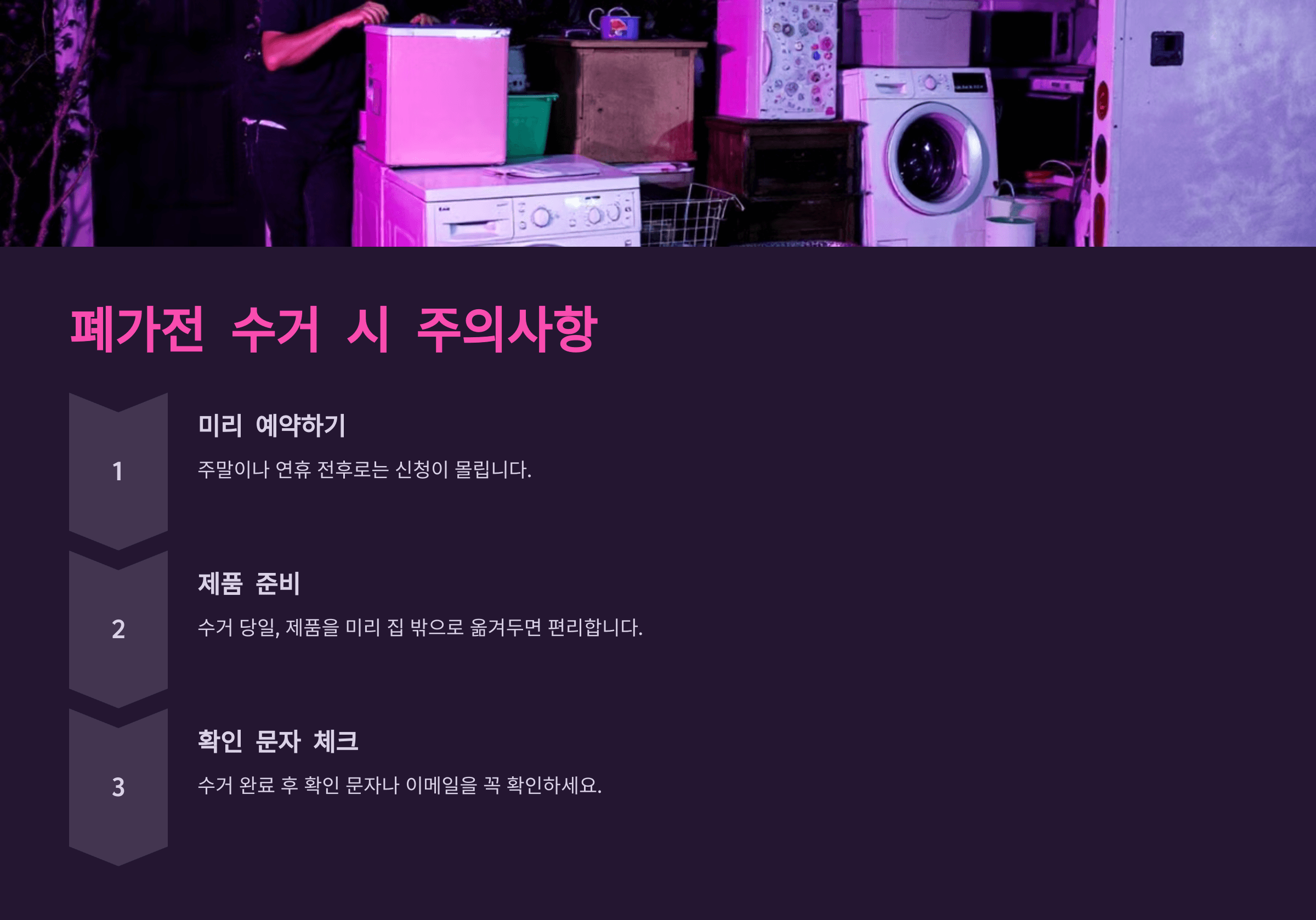 지금 바로 폐가전 무료수거 서비스를 신청해보세요. 👇
